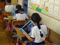家庭科で整理整頓を学習している5年生,学校内の写真をとって発表しているよ。