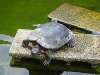 池のカメさん,今年も脱皮が始まった!毎年するのか,脱皮って。また大きくなるのか,君は。