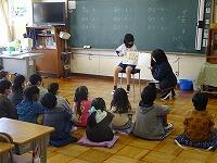 1年生の教室では子ども司書さんが読み聞かせ会を,