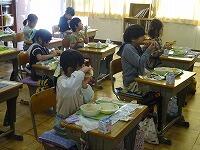 給食はやっぱり,前をむいて静かに食べようね。