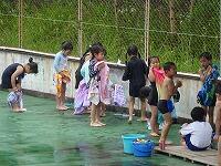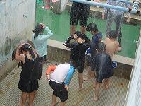 学校に戻って急いでプールに行ったら,お風呂上がりのようにさっぱりした1,2年生がいました。