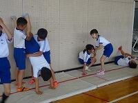 4年生体育。逆立ちができるようになることを目指して,練習練習。