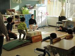 もうすぐ1年生になるお友だちが,ときどき学校の練習にやってくるよ。