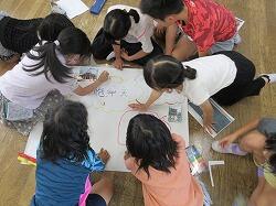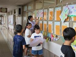 掲示物をはずして持ち帰ったり,夏休みのしおりをみんなで読んだりして,