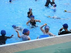 もしプールに入って泳いだら,水の中で熱中症になるらしいよ。水泳も体育だからね。