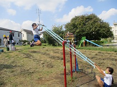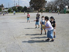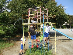 秋晴れの青空の下で,久しぶりの外遊びにニコニコ笑顔の高西っ子たちです。
