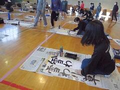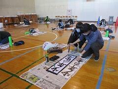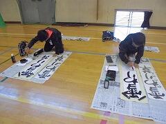 6年生は来週の書き初め練習に備えて,教室で新聞紙に練習しました。