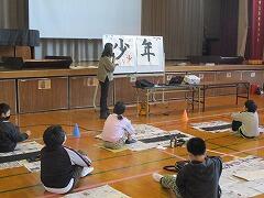 先週の3年生に続いて,今日は4~6年生の書き初め練習です。