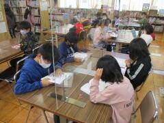 4年2組は図書室で静かに読書です。