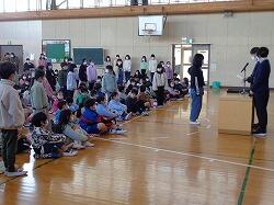 全校朝会で,校長先生と高橋先生から,2月にがんばってほしいことのお話がありました。