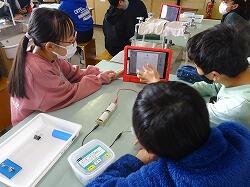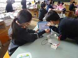 電気回路と,「MESH」というアプリを使って,6年生がプログラミングを学んでいます。