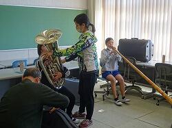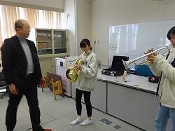 先日に引き続き,地域の音楽家の水上先生の「金管楽器体験会」2回目です。