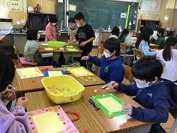 この日,1組の外国語は「形を使ったプレゼントカードづくり」をペアの友達に向けて行いました。