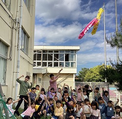 5月5日のこどもの日を前に,みんなで空に泳がせ,「こいのぼり」を元気に歌いました。
