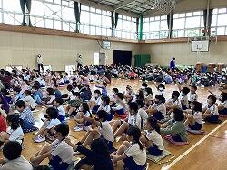 初めに,運動会を通して身に付けてほしいこととして,「①メリハリのある行動②全力で取り組むこと」を伝えました。真剣な眼差しで聞いていて,大きな返事も返ってきて,きっとしっかり心に留めてくれたことと思います。