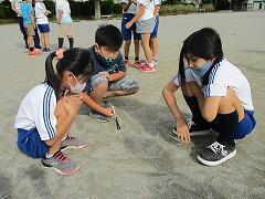 3年生が理科の学習で,校庭で地面の温度を測定したり,