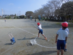 他学年の体育でやっている「テニピン」を楽しみました。