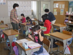 柏市教育委員会の玉川指導主事も子どもたちに声援を送って,授業を盛り立てています。