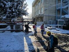 雪が積もったしいの木台を元気に登校してきた高西っ子たち。