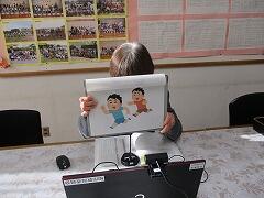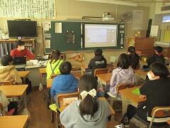 夏休みエコ絵画コンクールで入選した4年生の表彰後に,