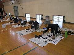 書き上げた作品は,来週1/17(月)・18(火)の校内書き初め展で