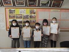 児童5名の表彰を行いました。おめでとうございます!