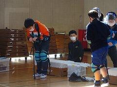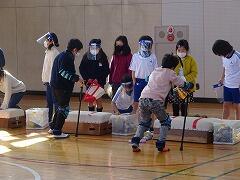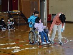 3年生は体育館で車いす体験をしたり,サポーターやゴーグルで