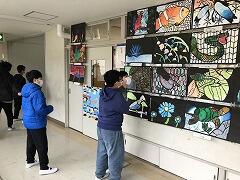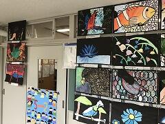 5年生が2学期に図工で取り組んでいた切り絵が,それぞれのクラス前に展示されました。