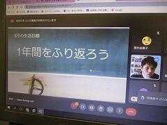 オンラインで,3月の全校朝会を行いました。