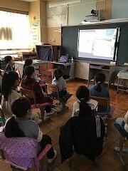 上の写真は,2年2組の動画視聴の様子です。興味深そうに見ていました。