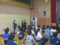 質問タイムでは,6年生のみんなから色々な質問が出されました。