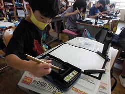道具の名前や置き方を覚えて,初めて筆を使いました。