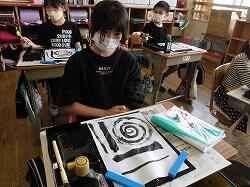 墨液につける時には「うわぁ~!」とみんなどきどき。いろいろな線を楽しく書きました