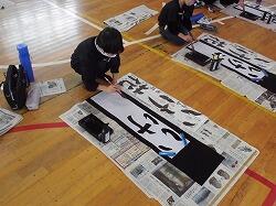 体育館で書き初めの練習をしました。今年度は「いけ花」を書きます。