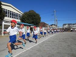 北風が吹く中、1・2・3年生の高西っ子たちはゴール目指して一生懸命走り抜きました。
