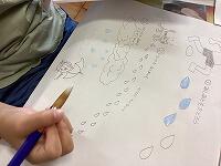 筆や水バケツ,パレットなどの使い方を確認しながら,水の量を変えて線を描いたり色を混ぜてみたりと,上手に学習することができました。