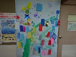 1年生と2年生の廊下にかざったら,すぐに願い事のたんざくでいっぱいになりました。
