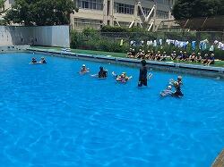 火が出るかと思うくらい強い日差しの中、低学年は着衣泳の学習を行いました。