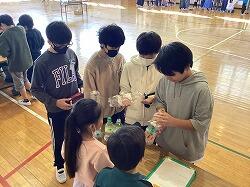 3、4年生で一緒にバスレクを楽しむ姿。