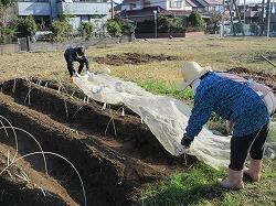 寒くてもかぶが元気に育つように,ネットをかけてくださいました。
