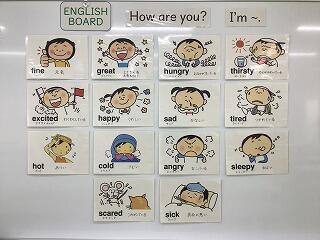 それに合わせて、English Boardには気持ち・体調の語句を掲示しています。