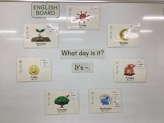 English Boardには、英語の曜日の由来を掲示しています。