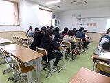 先輩方が田中中の行事や部活動、給食などについて英語でプレゼンテーションする姿を