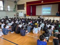 今日は、1年生の生活科の授業で、外部よりシャボン玉の先生をお呼びしてシャボン玉遊びをしました。