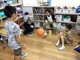 まずは,ボールをキャッチしたり,ドリブルしたりなど,ボールと仲良くなる活動をしました。