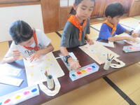 体験活動では、合羽刷りと千代紙ロウソク作りに挑戦しました。