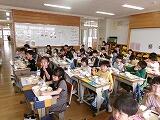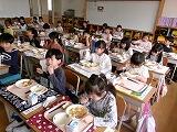 1年生の給食が始まりました。初めての給食はドキドキ,わくわくといった感じでした。「楽しみ~」という元気な声も聞かれますが,なかには不安に思っている子もいるはずです。子ども達に声をしっかりかけながら楽しい,おいしい,笑顔いっぱいの給食にしていきます。「給食はどうですか」と聞くと「おいしい~~」「野菜食べたよ」「カレー食べられる!」「おかわりしたい」などなど笑顔いっぱいの返事が返ってきました。1年生のパワーはこちらも嬉しく,元気になります。6年生が片づけのお手伝いをしています。さすが最高学年です!えらい