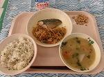牛乳 七草ご飯 鯖の照り焼き 切干大根の旨煮 白玉みそ雑煮 きな粉豆