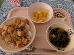 牛乳 家常豆腐丼 わかめスープ フルーツ和え 大豆小魚
