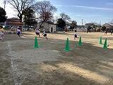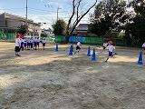 ボール投げでは投げたボールをコーンに当てる的当てゲームをしています。